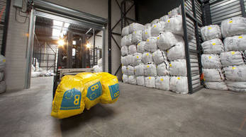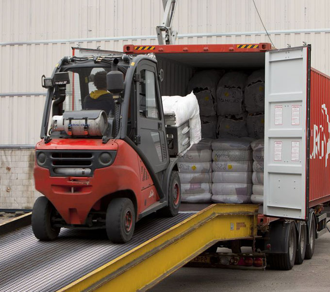 De container wordt leeg gewogen en vervolgens gevuld met balen en/of zakken uit de voorraadloodsen conform de bestelling van de klant. Voordat de goederen de container ingereden worden scant de heftruckchauffeur ze om een correcte registratie van uitgaande goederen te realiseren.
